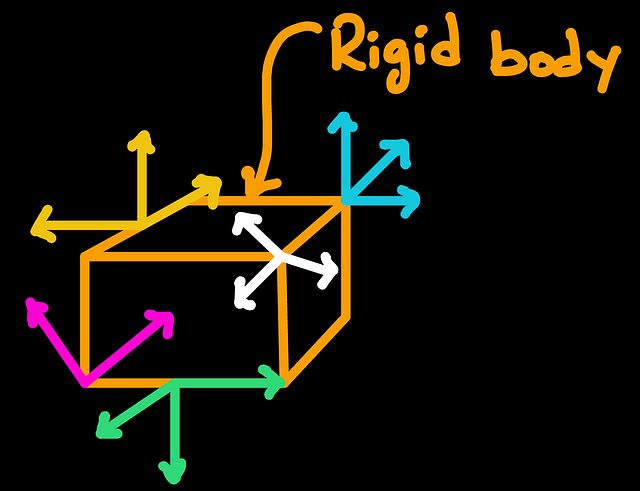 For most applications in 3D space, this group of objects will be a set of three orthogonal unit vectors that are defined following the right-hand rule.