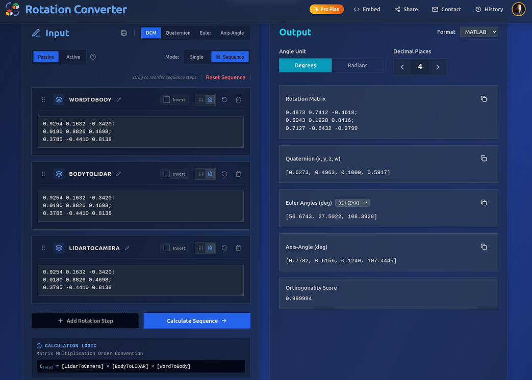 For anyone working with Euler angles, quaternions, or rotation matrices — and needing to move confidently between them — this tool provides a practical and well-designed solution.
